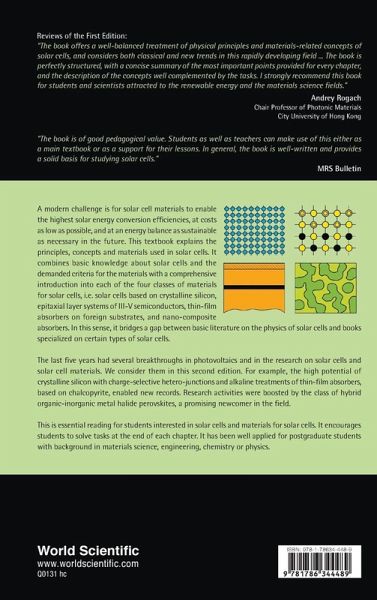 A modern challenge is for solar cell materials to enable the highest solar energy conversion efficiencies, at costs as low as possible, and at an energy balance as sustainable as necessary in the future. This textbook explains the principles, concepts and materials used in solar cells. It combines basic knowledge about solar cells and the demanded criteria for the materials with a comprehensive introduction into each of the four classes of materials for solar cells, i.e. solar cells based on crystalline silicon, epitaxial layer systems of III-V semiconductors, thin-film absorbers on foreign substrates, and nano-composite absorbers. In this sense, it bridges a gap between basic literature on the physics of solar cells and books specialized on certain types of solar cells. The last five years had several breakthroughs in photovoltaics and in the research on solar cells and solar cell materials. We consider them in this second edition. For example, the high potential of crystalline silicon with charge-selective hetero-junctions and alkaline treatments of thin-film absorbers, based on chalcopyrite, enabled new records. Research activities were boosted by the class of hybrid organic-inorganic metal halide perovskites, a promising newcomer in the field. This is essential reading for students interested in solar cells and materials for solar cells. It encourages students to solve tasks at the end of each chapter. It has been well applied for postgraduate students with background in materials science, engineering, chemistry or physics.