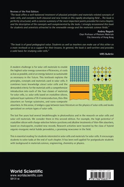 A modern challenge is for solar cell materials to enable the highest solar energy conversion efficiencies, at costs as low as possible, and at an energy balance as sustainable as necessary in the future. This textbook explains the principles, concepts and materials used in solar cells. It combines basic knowledge about solar cells and the demanded criteria for the materials with a comprehensive introduction into each of the four classes of materials for solar cells, i.e. solar cells based on crystalline silicon, epitaxial layer systems of III-V semiconductors, thin-film absorbers on foreign substrates, and nano-composite absorbers. In this sense, it bridges a gap between basic literature on the physics of solar cells and books specialized on certain types of solar cells. The last five years had several breakthroughs in photovoltaics and in the research on solar cells and solar cell materials. We consider them in this second edition. For example, the high potential of crystalline silicon with charge-selective hetero-junctions and alkaline treatments of thin-film absorbers, based on chalcopyrite, enabled new records. Research activities were boosted by the class of hybrid organic-inorganic metal halide perovskites, a promising newcomer in the field. This is essential reading for students interested in solar cells and materials for solar cells. It encourages students to solve tasks at the end of each chapter. It has been well applied for postgraduate students with background in materials science, engineering, chemistry or physics.