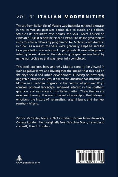 This book explores how and why Matera came to be viewed in such negative terms and investigates the impact this had on the city's social and urban development. Drawing on previously neglected primary sources, it charts the discursive construction of Matera as a «national disgrace» in the context of post-war Italy's complex political landscape, renewed interest in the southern question, and narratives of the Italian nation. These themes are examined through the lens of recent scholarship in the history of emotions, the history of nationalism, urban history, and the new southern history.
