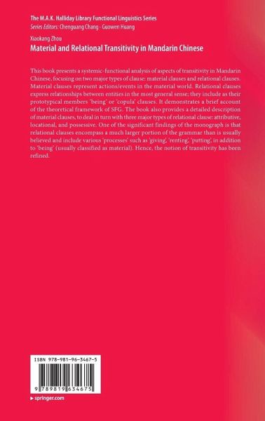 Introduction: Linguistic Background and Theoretical Framework.- Material Clauses in Mandarin Chinese.- Relational Clauses in Mandarin Chinese: Attributive.- Relational Clauses in Mandarin Chinese: Locational.- Relational Clauses in Mandarin Chinese: Possessive.