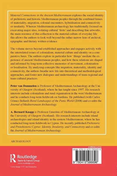 Material Connections eschews outdated theory, tainted by colonialist attitudes, and develops a new cultural and historical understanding of how factors such as mobility, materiality, conflict and co-presence impacted on the formation of identity in the ancient Mediterranean. Fighting against 'hyper-specialisation' within the subject area, it explores the multiple ways that material culture was used to establish, maintain and alter identities, especially during periods of transition, culture encounter and change. A new perspective is adopted, one that perceives the use of material culture by prehistoric and historic Mediterranean peoples in formulating and changing their identities. It considers how objects and social identities are entangled in various cultural encounters and interconnections. The movement of people as well as objects has always stood at the heart of attempts to understand the courses and process of human history. The Mediterranean offers a wealth of such information and Material Connections, expanding on this base, offers a dynamic, new subject of enquiry - the social identify of prehistoric and historic Mediterranean people - and considers how migration, colonial encounters, and connectivity or insularity influence social identities. The volume includes a series of innovative, closely related case studies that examine the contacts amongst various Mediterranean islands - Sardinia, Corsica, Sicily, Crete, Cyprus, the Balearics - and the nearby shores of Italy, Greece, North Africa, Spain and the Levant to explore the social and cultural impact of migratory, colonial and exchange encounters. Material Connections forges a new path in understanding the material culture of the Mediterranean and will be essential for those wishing to develop their understanding of material culture and identity in the Mediterranean.