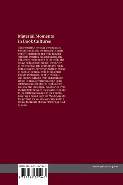 This Festschrift honours the dedicated book historian and medievalist Gabriele Müller-Oberhäuser. Her wide-ranging scholarly expertise has encouraged and influenced many adepts of the book. The essays in this volume reflect the variety of her interests: The contributions range from Chaucer's Fürstenspiegel to the value of books in comedy, from the material book to the magical book in religious and literary cultures, from collaborative efforts in manuscript production to the relations of distributors of books across national and ideological boundaries, from the relations between the makers of books to the relation of readers to their books. Covering a period from the Middle Ages to the present, the volume concludes with a look at the future of book history as a field of study.