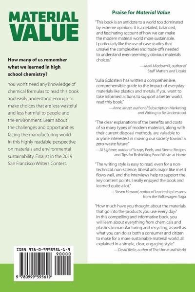 Creative Solutions from Smart Businesses Are you concerned about plastic waste and its effect on public health and the environment? You're not alone. Read Material Value to learn about the challenges facing the manufacturing world and how to make choices that are less wasteful and less harmful to people and the environment. Discover: How metals and plastics are made and what happens when they are recycled The challenges that manufacturers face when trying to make their facilities and products less toxic and less wasteful How manufacturers can extract the value of materials while doing less damage to human health and the environment How smart companies are embracing the triple bottom line—profit, people, planet—to make manufacturing safer and more efficient Why some big corporations painted as evildoers deserve a second look Get the inside scoop from: A business owner recycling scrap from airplane manufacturing A former geologist running a chain of donut shops Two entrepreneurs committed to improving e-waste processing An executive promoting social and environmental responsibility at a major electronics company A chemist developing safer cleaning products "Meticulous editing and a succinct style... Exemplary for its balanced and reasonable viewpoint, the text deserves to be classified as a reference tool for countless professionals." —Publishers Weekly, BookLife Prize "This book is an antidote to a world too dominated by extreme opinions: it is a detailed, balanced and fascinating account of how we can make the modern material world more sustainable." —Mark Miodownik, author of Stuff Matters and Liquid "If you want to take informed actions to support a better world, read this book."—Anne Janzer, author of Subscription Marketing and Writing to Be Understood The challenges are huge, and the answers are not always obvious, but Material Value shares a message of cautious optimism. Smart and creative entrepreneurs, business owners, and executives from companies large and small are working on solutions and individuals can help them succeed. If you care about making the material world more sustainable and want to learn more, read Material Value to discover the true value of materials and how we as a society can use them more wisely.