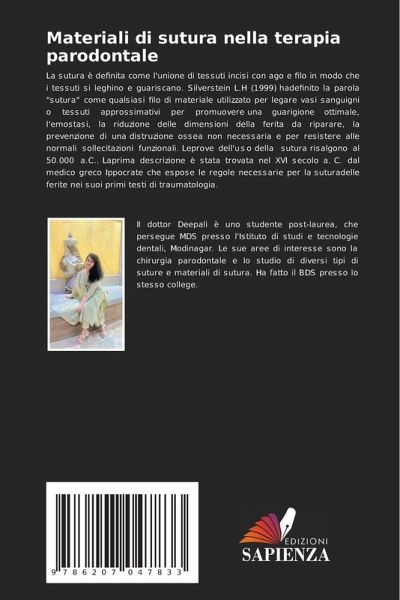 La sutura è definita come l'unione di tessuti incisi con ago e filo in modo che i tessuti si leghino e guariscano. Silverstein L.H (1999) hadefinito la parola "sutura" come qualsiasi filo di materiale utilizzato per legare vasi sanguigni o tessuti approssimativi per promuovere una guarigione ottimale, l'emostasi, la riduzione delle dimensioni della ferita da riparare, la prevenzione di una distruzione ossea non necessaria e per resistere alle normali sollecitazioni funzionali. Leprove dell'uso della sutura risalgono al 50.000 a.C.. Laprima descrizione è stata trovata nel XVI secolo a. C. dal medico greco Ippocrate che espose le regole necessarie per la suturadelle ferite nei suoi primi testi di traumatologia.