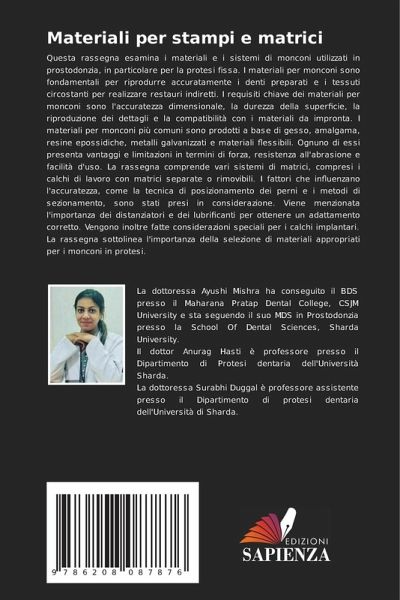 Questa rassegna esamina i materiali e i sistemi di monconi utilizzati in prostodonzia, in particolare per la protesi fissa. I materiali per monconi sono fondamentali per riprodurre accuratamente i denti preparati e i tessuti circostanti per realizzare restauri indiretti. I requisiti chiave dei materiali per monconi sono l'accuratezza dimensionale, la durezza della superficie, la riproduzione dei dettagli e la compatibilità con i materiali da impronta. I materiali per monconi più comuni sono prodotti a base di gesso, amalgama, resine epossidiche, metalli galvanizzati e materiali flessibili. Ognuno di essi presenta vantaggi e limitazioni in termini di forza, resistenza all'abrasione e facilità d'uso. La rassegna comprende vari sistemi di matrici, compresi i calchi di lavoro con matrici separate o rimovibili. I fattori che influenzano l'accuratezza, come la tecnica di posizionamento dei perni e i metodi di sezionamento, sono stati presi in considerazione. Viene menzionata l'importanza dei distanziatori e dei lubrificanti per ottenere un adattamento corretto. Vengono inoltre fatte considerazioni speciali per i calchi implantari. La rassegna sottolinea l'importanza della selezione di materiali appropriati per i monconi in protesi.