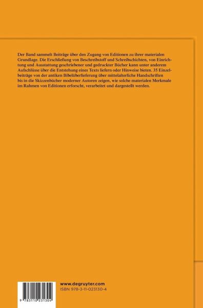 Erstmals liegt für die Editionswissenschaften ein Sammelband vor, der das in den Geistes- und Kulturwissenschaften immer wichtigere Paradigma Materialität in seiner Vielfalt beleuchtet. 35 Einzelbeiträge weisen auf, wie die materiale Grundlage der Überlieferung im Rahmen von Editionen erforscht, verarbeitet und dargestellt werden kann. Die exemplarischen Studien zeigen die große Spannbreite des Themas von der naturwissenschaftlichen Analyse des Beschreibstoffs über textgenetische Studien von Schreibvorgängen bis zur Diskussion des Materialitätsbegriffs. In den Beiträgen, die von der antiken Bibelüberlieferung über mittelalterliche Handschriften und den Brief des 18. Jahrhunderts bis in die Skizzenbücher der Neuzeit reichen, wird vorgeführt, wie etwa die Röntgenfluroeszenzanalyse für literaturhistorische Fragen nutzbar gemacht werden kann oder wie die Erschließung von Beschreibstoff und Schreibschichten, von Einrichtung und Ausstattung geschriebener und gedruckter Bücher Aufschlüsse über die Entstehung eines Texts liefern kann, die eine differenzierte, kommentierte Form der Edition erfordern. Ausführlich eingegangen wird auf die Möglichkeit, in Hybrideditionen Druckausgaben durch Digitalisate und Transkriptionen zu ergänzen.