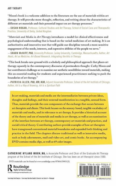 Section I: Art Therapy Materials and Media: History and Theory. Moon A History of Materials and Media in Art Therapy. Moon Theorizing Materiality in Art Therapy: Negotiated Meanings. Orr Social Remixing: Art Therapy Media in the Digital Age. Section II: From Artist to Art Therapist: How Art Therapists' Use of Materials Media and Practices Informs the Work as Therapists. Yi From Imperfect to I Am Perfect: Reclaiming the Disabled Body Through Making Body Adornments in Art Therapy. Whitaker Groundswell: The Nature and Landscape of Art Therapy. Newman Creating a Safe Place for Lesbian Gay Bisexual and Transgender Youth: Exhibiting Installation Art for Social Change. Gerity Fourteen Secrets for a Happy Artist's Life: Using Art and the Internet to Encourage Resilience Joy and a Sense of Community. Colletti Inspired by a Stranger: Exploring Mail Art. Section III: Materials and Media Applications in Art Therapy. Austin Technology Art Therapy and Psychodynamic Theory: Computer Animation With an Adolescent in Foster Care. Huss Bedouin Women's Embroidery as Female Empowerment: Crafts as Culturally Embedded Expression Within Art Therapy. Lukas-Falk Comic Books Connection and the Artist Identity. Mosinski Video Art and Activism: Applications in Art Therapy. Hawley Beatmaking: Reaching Beyond Art Therapy to Follow the Creative Path of Music.