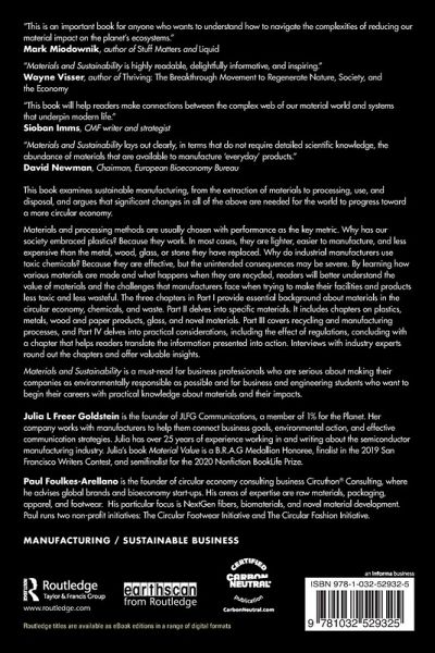 Materials and Sustainability is a must-read for business professionals who are serious about making their companies as environmentally responsible as possible and for business and engineering students who want to begin their careers with practical knowledge about materials and their impacts.