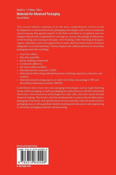This second edition continues to be the most comprehensive review on the developments in advanced packaging technologies. Experts in the field discuss established techniques, as well as emerging technologies, to provide readers with the most up-to-date developments in advanced packaging. Original chapters on bonding and joining techniques, nanopackaging and biomedical packaging, MEMS and wafer level chip scale packaging, and packaging materials such as lead-free solders, flip chip underfills, epoxy molding compounds, and conductive adhesives have all been updated with the latest developments in the field. New chapters have also been added on fast growing and emerging applications such as flexible and printed electronics, materials solutions to enable next generation thinner/lighter/more functional mobile devices, and functional coating for electronic devices such as anti-fingerprint coating, anti-scratch coating, and more. This book is ideal for professionals in semiconductor, digital health, and bio-medical areas as well as graduate students studying materials science and engineering.