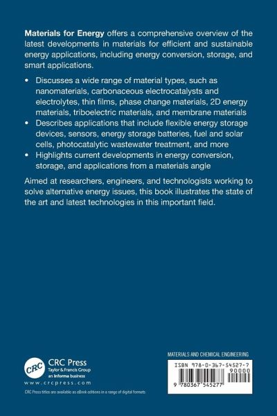 Materials for Energy offers a comprehensive overview of the latest developments in materials for efficient and sustainable energy applications, including energy conversion, storage, and smart applications. ¿ Discusses a wide range of material types, such as nanomaterials, carbonaceous electrocatalysts and electrolytes, thin films, phase change materials, 2D energy materials, triboelectric materials, and membrane materials Describes applications that include flexible energy storage devices, sensors, energy storage batteries, fuel and solar cells, photocatalytic wastewater treatment, and more Highlights current developments in energy conversion, storage, and applications from a materials angle ¿ Aimed at researchers, engineers, and technologists working to solve alternative energy issues, this work illustrates the state of the art and latest technologies in this important field. ¿ ¿