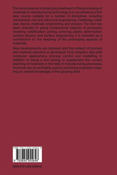 This book is designed to give a short introduction to the field of materials pro cesses for students in the different engineering and physical sciences. It gives an overall treatment of processing and outlines principles and techniques related to the different categories of materials currently employed in technology. It should be used as a first year text and a selection made of the contents to provide a one or two term course. It is not intended to be fully comprehensive but treats major processing topics. In this way, the book has been kept within proportions suitable as an introductory…mehr