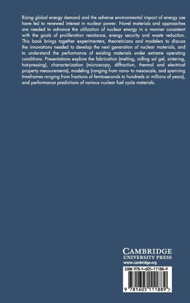 Rising global energy demand and the adverse environmental impact of energy use have led to renewed interest in nuclear power. Novel materials and approaches are needed to advance the utilization of nuclear energy in a manner consistent with the goals of proliferation resistance, energy security and waste reduction. This book brings together experimenters, theoreticians and modelers to discuss the innovations needed to develop the next generation of nuclear materials, and to understand the performance of existing materials under extreme operating conditions. Presentations explore the fabrication (melting, rolling sol gel, sintering, hot-pressing), characterization (microscopy, diffraction, thermal and electrical property measurements), modeling (ranging from nano- to mesoscale, and spanning timeframes ranging from fractions of femtoseconds to hundreds or millions of years), and performance predictions of various nuclear fuel cycle materials.