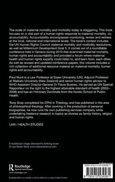 The scale of maternal mortality and morbidity today is staggering. This book focuses on a vital part of a human rights response to maternal mortality, viz. accountability. Accountability encompasses monitoring, review and redress at the local, national and international levels. The book's context includes the UN Human Rights Council maternal mortality and morbidity resolutions, as well as Millennium Development Goal 5. It comes out of a roundtable conference held in Geneva during 2010 that examined maternal mortality, human rights and accountability and provided a forum where maternal health and human rights experts could listen to, and learn from, each other. As well as revised and updated conference papers, this volume includes a rich collection of additional resource material on maternal mortality, human rights and accountability.
