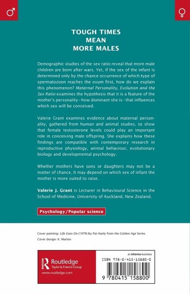 Women who are dominant are more likely to have sons. Demographic studies show that more male children are born after wars, yet most people believe that their baby's sex is a matter of chance - determined by the father's sperm. Valerie Grant presents evidence that the mother's personality - which is related to female testosterone levels - can actually influence which type of sperm fertilises the egg. Using data from human and animal studies Valerie Grant discusses the implications for human evolution, developmental psychology and reproductive biology. Her claims are controversial and the implications of her findings far reaching. Whether mothers have sons or daughters may not be a matter of chance. It may depend on which sex infant the mother is more suited to raise.