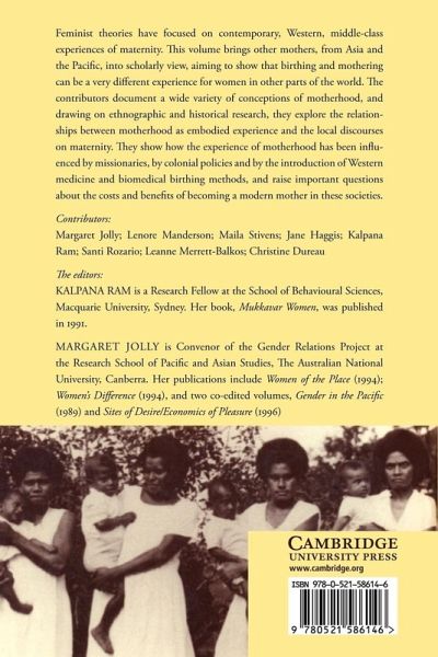 Feminist theories have focused on contemporary, Western, middle-class experiences of maternity. This volume brings other mothers, from Asia and the Pacific, into scholarly view, aiming to show that birthing and mothering can be a very different experience for women in other parts of the world. The contributors document a wide variety of conceptions of motherhood, and drawing on ethnographic and historical research, they explore the relationships between motherhood as embodied experience and the local discourses on maternity. They show how the experience of motherhood has been influenced by missionaries, by colonial policies and by the introduction of Western medicine and biomedical birthing methods, and raise important questions about the costs and benefits of becoming a modern mother in these societies.