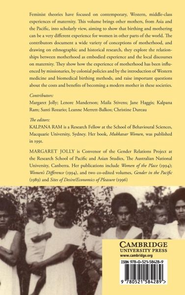 Feminist theories have focused on contemporary, Western, middle-class experiences of maternity. This volume brings other mothers, from Asia and the Pacific, into scholarly view, aiming to show that birthing and mothering can be a very different experience for women in other parts of the world. The contributors document a wide variety of conceptions of motherhood, and drawing on ethnographic and historical research, they explore the relationships between motherhood as embodied experience and the local discourses on maternity. They show how the experience of motherhood has been influenced by missionaries, by colonial policies and by the introduction of Western medicine and biomedical birthing methods, and raise important questions about the costs and benefits of becoming a modern mother in these societies.