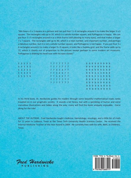 My life has found mathematics a subject with numerous areas open for exploration. The chapter titles are the areas covered - primes, Pythagoras, progressions, parabolas, polygons, and probabilities. There are so many discoveries hard to find elsewhere that it might indeed be called the "math road less traveled." In the book there is an abundance of numerical connections to history, astronomy, biology, chemistry, music, my life, and the Bible.The chapter on parabolas is absolutely amazing, with such concepts as the Seven Great Numbers, Highway 46, spiral staircases to infinity, the Triple Jump, Silver and Golden and Platinum Elevators, and binary stars - all in numbers. Mathematics is presented as a subject of great beauty and wonder.