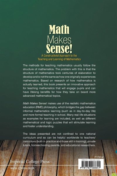 The methods for teaching mathematics usually follow the structure of mathematics. The problem with this is that the structure of mathematics took centuries of elaboration to develop and is not the same as how one originally experiences mathematics. Based on research of how mathematics is actually learned, this book presents an innovative approach for teaching mathematics that will engage pupils and can have lifelong benefits for how they take on board more advanced mathematical topics. Math Makes Sense! makes use of the realistic mathematics education (RME) philosophy, which bridges the gap between informal mathematics learning (such as in day-to-day life) and more formal teaching in school. Many real-life situations as examples for learning are included, as well as different mathematical and logic puzzles that will stimulate learning and foster understanding. The ideas presented are not confined to one national curriculum and so can be helpful worldwide to teachers/ instructors (both in practice and those still in training), private tutors, homeschooling parents, and educational researchers.