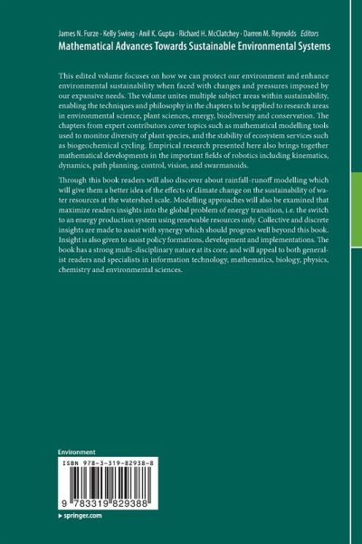 This edited volume focuses on how we can protect our environment and enhance environmental sustainability when faced with changes and pressures imposed by our expansive needs. The volume unites multiple subject areas within sustainability, enabling the techniques and philosophy in the chapters to be applied to research areas in environmental science, plant sciences, energy, biodiversity and conservation. The chapters from expert contributors cover topics such as mathematical modelling tools used to monitor diversity of plant species, and the stability of ecosystem services such as biogeochemical cycling. Empirical research presented here also brings together mathematical developments in the important fields of robotics including kinematics, dynamics, path planning, control, vision, and swarmanoids.