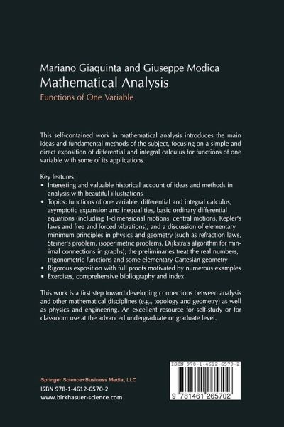"Giaquinta . . . and Modica . . . present the differential and integral calculus for real functions of a single real variable from a sophisticated point of view. Their book is far better suited as a source of unique perspectives on the logical development of calculus ideas and their physical applications . . . [so that] it will better serve the experienced calculus instructor seeking new approaches to familiar material, or the student who has already mastered the basic ideas and techniques of calculus but wishes to see it all again, 'done right,' . . . Highly recommended."