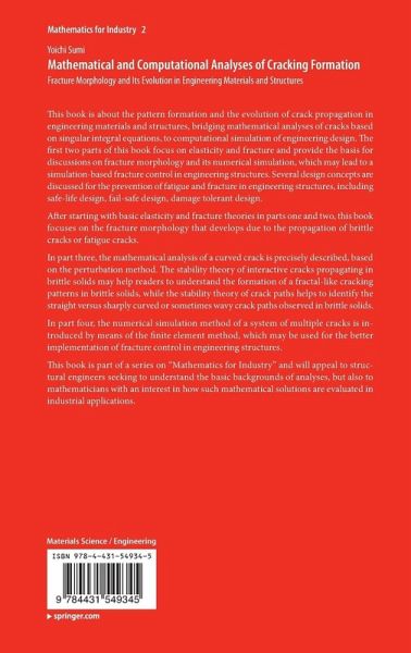 This book is about the pattern formation and the evolution of crack propagation in engineering materials and structures, bridging mathematical analyses of cracks based on singular integral equations, to computational simulation of engineering design. The first two parts of this book focus on elasticity and fracture and provide the basis for discussions on fracture morphology and its numerical simulation, which may lead to a simulation-based fracture control in engineering structures. Several design concepts are discussed for the prevention of fatigue and fracture in engineering structures, including safe-life design, fail-safe design, damage tolerant design.
