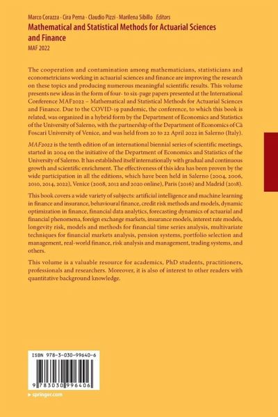 The cooperation and contamination among mathematicians, statisticians and econometricians working in actuarial sciences and finance are improving the research on these topics and producing numerous meaningful scientific results. This volume presents new ideas in the form of four- to six-page papers presented at the International Conference MAF2022 - Mathematical and Statistical Methods for Actuarial Sciences and Finance. Due to the COVID-19 pandemic, the conference, to which this book is related, was organized in a hybrid form by the Department of Economics and Statistics of the University of Salerno, with the partnership of the Department of Economics of Cà Foscari University of Venice, and was held from 20 to 22 April 2022 in Salerno (Italy)