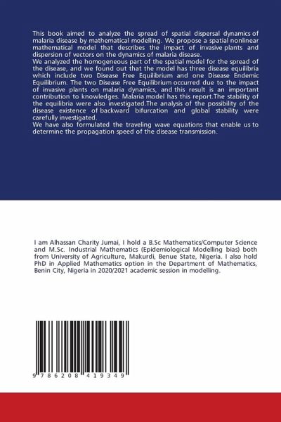 This book aimed to analyze the spread of spatial dispersal dynamics of malaria disease by mathematical modelling. We propose a spatial nonlinear mathematical model that describes the impact of invasive plants and dispersion of vectors on the dynamics of malaria disease.We analyzed the homogeneous part of the spatial model for the spread of the disease, and we found out that the model has three disease equilibria which include two Disease Free Equilibrium and one Disease Endemic Equilibrium. The two Disease Free Equilibrium occurred due to the impact of invasive plants on malaria dynamics, and this result is an important contribution to knowledges. Malaria model has this report.The stability of the equilibria were also investigated.The analysis of the possibility of the disease existence of backward bifurcation and global stability were carefully investigated.We have also formulated the traveling wave equations that enable us to determine the propagation speed of the disease transmission.