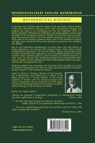 "This is the second volume of the third edition of Murray's 'Mathematical Biology'. ... covers a wide variety of problems in pattern formation, each discussed in its biological context. ... This volume alone is a large book, with more than 800 pages and a similar number of references. ... it is a valuable collection of results from different areas of mathematical biology."