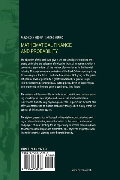 "The book presents the part of mathematical finance devoted to the pricing of derivative instruments; its basic theme is the study of prices in securities markets in an uncertain environment. . . As the objective of the book is to provide a sound understanding of important issues of modern approaches to mathematical finance, several mathematical models are developed and examined in detail. The focus is on finite-time models and the highest level of generality is frequently sacrificed for the sake of a greater insight into the underlying economic ideas. Even when the problems are approached from the mathematical point of view and almost all results are strictly proved, the financial interpretation is always stressed. . . The style of presentation is aimed at students of financial economics, mathematics and physics and at mathematicians, physicists and economists working in financial industry."