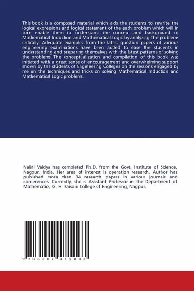 This book is a composed material which aids the students to rewrite the logical expressions and logical statement of the each problem which will in turn enable them to understand the concept and background of Mathematical Induction and Mathematical Logic by analyzing the problems critically. Adequate examples from the latest question papers of various engineering examinations have been added to ease the students in understanding and preparing themselves with the latest patterns of solving the problems. The conceptualization and compilation of this book was initiated with a great sense of encouragement and overwhelming support shown by the students of Engineering Colleges on the sessions engaged by me on the techniques and tricks on solving Mathematical Induction and Mathematical Logic problems.