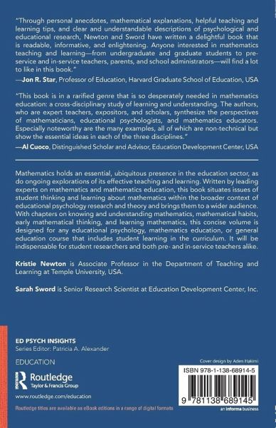 Mathematics holds an essential, ubiquitous presence in the education sector, as do ongoing explorations of its effective teaching and learning. Written by leading experts on mathematics and mathematics education, this book situates issues of student thinking and learning about mathematics within the broader context of educational psychology research and theory and brings them to a wider audience. With chapters on knowing and understanding mathematics, mathematical habits, early mathematical thinking, and learning mathematics, this concise volume is designed for any educational psychology, mathematics education, or general education course that includes student learning in the curriculum. It will be indispensable for student researchers and both pre- and in-service teachers alike.