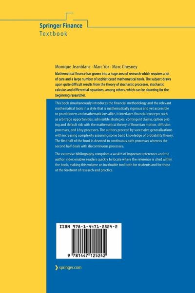 Mathematical finance has grown into a huge area of research which requires a large number of sophisticated mathematical tools. This book simultaneously introduces the financial methodology and the relevant mathematical tools in a style that is mathematically rigorous and yet accessible to practitioners and mathematicians alike. It interlaces financial concepts such as arbitrage opportunities, admissible strategies, contingent claims, option pricing and default risk with the mathematical theory of Brownian motion, diffusion processes, and Lévy processes. The first half of the book is devoted to continuous path processes whereas the second half deals with discontinuous processes.