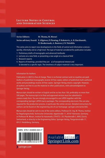The underlying theory on which much modern robust and nonlinear control is based can often be dif?cult for the student to grasp. In particular, the mathematical - pects can be problematic for students from a standard engineering background. The EPSRC sponsored Summer School which was held in Leicester in September 2006 attempted to "?ll the gap" in students' appreciation the theory relevant to several important areas of control. This book is a collection of lecture notes which were p- sented at that workshop and consists of, broadly, two parts. The ?rst nine chapters are devoted to the theory behind several areas of robust and nonlinear control and are aimed at introducing fundamental concepts to the reader. The last six chapters contain detailed case studies which aim to demonstrate the use and effectiveness of these modern techniques in real engineering applications. It is hoped that this book will provide a useful introduction to many of the more common robust and nonlinear control techniques and serve as a valuable reference for the more adept practitioner. Leicester, Matthew C. Turner May 2007 Declan G. Bates Contents List of Contributors . . . . . . . . . . . . . . . . . . . . . . . . . . . . . . . . . . . . . . . . . . . . . XV Part I Theory of Robust and Nonlinear Control 1H Control Design ? Declan G. Bates . . . . . . . . . . . . . . . . . . . . . . . . . . . . . . . . . . . . . . . . . . . . . . . . . . . . . . . . . . . . . . . . . . . . . . . . . . . . . . . . . . . . . . . . . . . 3 1. 1 Introduction . . . . . . . . . . . . . . . . . . . . . . . . . . . . . . . . . . . . . . . . . . . . . . . . . . 3 1. 2 Design Speci?cations and Fundamental Trade-offs . . . . . . . . . . . . . . . . . . 5 1. 2. 1 Linear Design Speci?cations for RobustControl Systems . . . . . 6 1. 2. 2 Frequency Domain Design Speci?cations and Fundamental Trade-offs . . . . . . . . . . . . . . . . . . . . . . . . . . . . . . . . . . . . . . . . . . . . 6 1. 3 Mixed-sensitivityH Controller Design . . . . . . . . . . . . . . . . . . . . . . . . . .