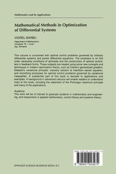 This work is a revised and enlarged edition of a book with the same title published in Romanian by the Publishing House of the Romanian Academy in 1989. It grew out of lecture notes for a graduate course given by the author at the University if Ia~i and was initially intended for students and readers primarily interested in applications of optimal control of ordinary differential equations. In this vision the book had to contain an elementary description of the Pontryagin maximum principle and a large number of examples and applications from various fields of science. The evolution of control science in the last decades has shown that its meth ods and tools are drawn from a large spectrum of mathematical results which go beyond the classical theory of ordinary differential equations and real analy ses. Mathematical areas such as functional analysis, topology, partial differential equations and infinite dimensional dynamical systems, geometry, played and will continue to play an increasing role in the development of the control sciences. On the other hand, control problems is a rich source of deep mathematical problems. Any presentation of control theory which for the sake of accessibility ignores these facts is incomplete and unable to attain its goals. This is the reason we considered necessary to widen the initial perspective of the book and to include a rigorous mathematical treatment of optimal control theory of processes governed by ordi nary differential equations and some typical problems from theory of distributed parameter systems.