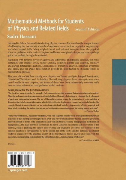 "Very well written (i.e., extremely readable), very well targeted (mainly to an average student of physics at a point of just leaving his/her sophomore level) and very well concentrated (to an author's apparently beloved subject of PDE's with applications and with all their necessary pedagogically-mathematical background)...The main merits of the text are its clarity (achieved via returns and innovations of the context), balance (building the subject step by step) and originality (recollect: the existence of the complex numbers is only admitted far in the second half of the text!). Last but not least, the student reader is impressed by the graphical quality of the text (figures first of all, but also boxes with the essentials, summarizing comments in the left column etc.)...Summarizing: Well done." --Zentralblatt MATH