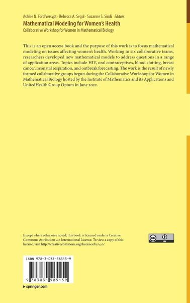 The purpose of this work is to focus mathematical modeling on issues affecting women's health. Working in six collaborative teams, researchers developed new mathematical models to address questions in a range of application areas. Topics include HIV, oral contraceptives, blood clotting, breast cancer, neonatal respiration, and outbreak forecasting. The work is the result of newly formed collaborative groups begun during the Collaborative Workshop for Women in Mathematical Biology hosted by the Institute of Mathematics and its Applications and UnitedHealth Group Optum in June 2022. This is an open access book. …mehr