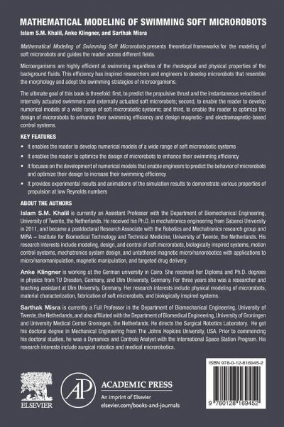 Mathematical Modelling of Swimming Soft Microrobots presents a theoretical framework for modelling of soft microrobotic systems based on resistive-force theory. Microorganisms are highly efficient at swimming regardless of the rheological and physical properties of the background fluids. This efficiency has inspired researchers and Engineers to develop microrobots that resemble the morphology and swimming strategies of microorganisms. The ultimate goal of this book is threefold: first, to relate resistive-force theory to externally and internally actuated microrobotic systems; second, to enable the readers to develop numerical models of a wide range of microrobotic systems; third, to enable the reader to optimize the design of the microrobot to enhance its swimming efficiency.