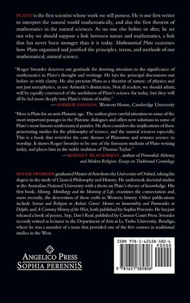 Plato is the first scientist whose work we still possess. He is our first writer to interpret the natural world mathematically, and also the first theorist of mathematics in the natural sciences. As no one else before or after, he set out why we should suppose a link between nature and mathematics, a link that has never been stronger than it is today. Mathematical Plato examines how Plato organized and justified the principles, terms, and methods of our mathematical, natural science. "Roger Sworder deserves our gratitude for drawing attention to the significance of mathematics in Plato's thought and writings. He lays the principal discussions out before us with clarity. He also presents Plato as a theorist of nature: of physics and not just metaphysics, to use Aristotle's distinction. Not all readers, we should admit, will be equally convinced of the usefulness of Plato's science for today, but they will all be led more deeply into Plato's vision of reality."--ANDREW DAVISON, Westcott House, Cambridge "Here is Plato for an anti-Platonic age. The author gives careful attention to some of the most important passages in the Platonic dialogues and offers new solutions to some of Plato's most famous mathematical puzzles. He then considers the implications of these penetrating studies for the philosophy of science, and the natural sciences especially. This is a book that revivifies the core themes of Platonism and restores science to worship. It shows Roger Sworder to be one of the foremost students of Plato writing today, and places him in the noble tradition of Thomas Taylor."--RODNEY BLACKHIRST, author of Primordial Alchemy and Modern Religion: Essays on Traditional Cosmology