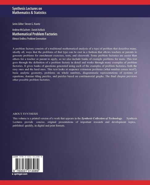 Preface.- Acknowledgments.- What Are Problem Factories?.- Sequence Extension Problems.- Basic Analytic Geometry Problems.- Problems Using Whole Numbers.- Diagrammatic Representations of Linear Systems.- Polyomino Tiling Puzzles.- Problems-Based on Graph Theory.- The Road Ahead: Other Problem Factories.- Authors' Biographies .