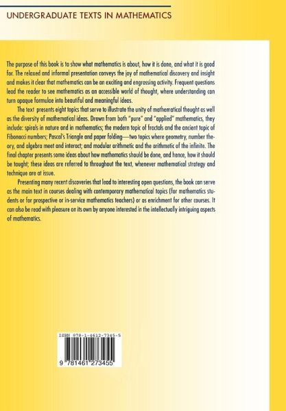 The purpose of this book is to show what mathematics is about, how it is done, and what it is good for. The eight topics covered illustrate the unity of mathematical thought as well as the diversity of mathematical ideas; the relaxed and informal discussion makes it clear that mathematics can be exciting and engrossing. The book, which includes recent discoveries that lead to open questions, will give pleasure to anyone interested in the intellectually intriguing aspects of mathematics.