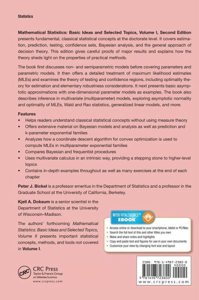 Basic Ideas and Selected Topics Volume I Second Edition. This first volume presents fundamental, classical statistical concepts at the doctorate level without using measure theory. It covers estimation, prediction, testing, confidence sets, Bayesian analysis, and the general approach of decision theory. This edition gives careful proofs of major results and explains how the theory sheds light on the properties of practical methods. The book includes in-depth examples throughout as well as many exercises at the end of each chapter.
