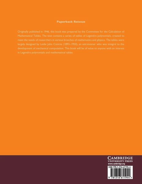 Originally published in 1946, this book was prepared by the Committee for the Calculation of Mathematical Tables. The text contains a series of tables of Legendre polynomials, created to meet the needs of researchers in various branches of mathematics and physics. The tables were largely designed by Leslie John Comrie (1893-1950), an astronomer who was integral to the development of mechanical computation. This book will be of value to anyone with an interest in Legendre polynomials and mathematical tables.