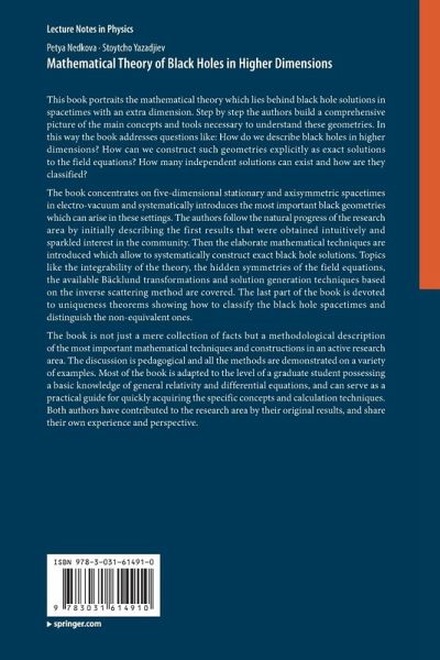 The Mathematical Theory of Black Holes in Higher Dimensions is an interesting, insightful and intellectually challenging tome . Black holes in higher dimensions are seldom referenced in many courses (both beginner and advanced) in the study of Einstein gravity. This book fills in this gap in readers' education by gently leading them through each of the topics one by one. Interesting references are scattering throughout the text which invites the reader to read beyond . (physicsbookreviewer.blogspot.com, January 29, 2025)