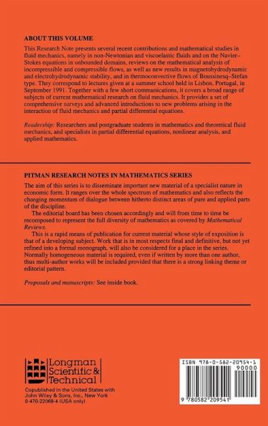 This Research Note presents several contributions and mathematical studies in fluid mechanics, namely in non-Newtonian and viscoelastic fluids and on the Navier-Stokes equations in unbounded domains. It includes review of the mathematical analysis of incompressible and compressible flows and results in magnetohydrodynamic and electrohydrodynamic stability and thermoconvective flow of Boussinesq-Stefan type. These studies, along with brief communications on a variety of related topics comprise the proceedings of a summer course held in Lisbon, Portugal in 1991. Together they provide a set of comprehensive survey and advanced introduction to problems in fluid mechanics and partial differential equations.