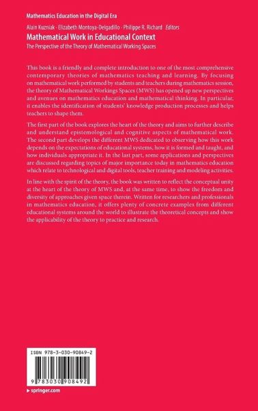The first part of the book explores the heart of the theory and aims to further describe and understand epistemological and cognitive aspects of mathematical work. The second part develops the different MWS dedicated to observing how this work depends on the expectations of educational systems, how it is formed and taught, and how individuals appropriate it. In the last part, some applications and perspectives are discussed regarding topics of major importance today in mathematics education which relate to technological and digital tools, teacher training and modeling activities.