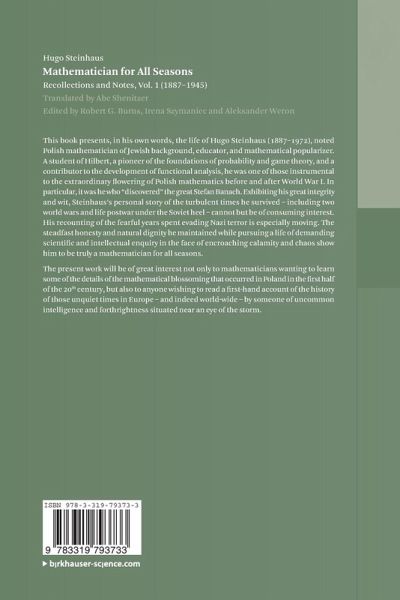 This book presents, in his own words, the life of Hugo Steinhaus (1887-1972), noted Polish mathematician of Jewish background, educator, and mathematical popularizer. A student of Hilbert, a pioneer of the foundations of probability and game theory, and a contributor to the development of functional analysis, he was one of those instrumental to the extraordinary flowering of Polish mathematics before and after World War I. In particular, it was he who "discovered" the great Stefan Banach. Exhibiting his great integrity and wit, Steinhaus's personal story of the turbulent times he survived - including two world wars and life postwar under the Soviet heel - cannot but be of consuming interest. His account of the years spent evading Nazi terror is especially moving. The steadfast honesty and natural dignity he maintained while pursuing a life of demanding scientific and intellectual enquiry in the face of encroaching calamity and chaos show him to be truly a mathematician for all seasons.