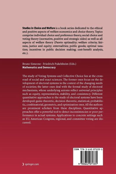 From the reviews: "The ... book is an edited volume, and exhibits both the flaws and virtues of that genre. ... I found the book interesting and important. ... the book is well worth having on your shelf. ... It would be useful, in fact, as a classroom exercise for students in a variety of disciplines, because it both illustrates the unnatural power of mathematics to illuminate hard questions and unites several apparently unrelated problems in a single analytic rubric. ... this is a valuable and important book." (Michael Munger, Public Choice, Vol. 132, 2007) "This is a fine collection of 17 papers chosen from contributions to the International Workshop on Mathematics and Democracy: Voting Systems and Collective Choice that took place in Erice, Sicily in 2005. ... one will walk away from this volume with the sense that one has been exposed to the research frontier of the electoral system theory." (Ugur Ozdemir, Social Choice and Welfare, Vol. 31, 2008)