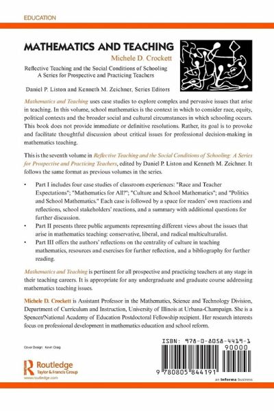 Mathematics and Teaching uses case studies to explore complex and pervasive issues that arise in teaching. In this volume, school mathematics is the context in which to consider race, equity, political contexts and the broader social and cultural circumstances in which schooling occurs. This book does not provide immediate or definitive resolutions. Rather, its goal is to provoke and facilitate thoughtful discussion about critical issues for professional decision-making in mathematics teaching. This is the 7th volume in Reflective Teaching and the Social Conditions of Schooling: A Series for Prospective and Practicing Teachers, edited by Daniel P. Liston and Kenneth M. Zeichner. It follows the same format as previous volumes in the series. Part I includes four case studies of classroom experiences: "Race and Teacher Expectations"; "Mathematics for All?"; "Culture and School Mathematics"; and "Politics and School Mathematics." Each case is followed by a space for readers' own reactions and reflections, school stakeholders' reactions, and a summary with additional questions for further discussion. Part II presents three public arguments representing different views about the issues that arise in mathematics teaching: conservative, liberal and radical multiculturalist. Part III offers the authors' reflections on the centrality of culture in teaching mathematics, resources and exercises for further reflection, and a bibliography for further reading. Mathematics and Teaching is pertinent for all prospective and practicing teachers at any stage in their teaching careers. It is appropriate for any undergraduate and graduate course addressing mathematics teaching issues.