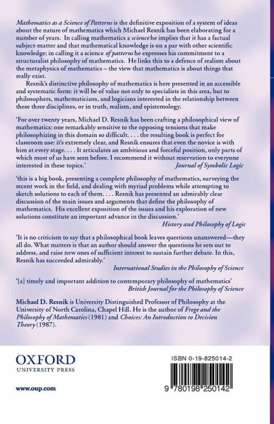 This book expounds a system of ideas about the nature of mathematics which Michael Resnik has been elaborating for a number of years. In calling mathematics a science he implies that it has a factual subject-matter and that mathematical knowledge is on a par with other scientific knowledge; in calling it a science of patterns he expresses his commitment to a structuralist philosophy of mathematics. He links this to a defense of realism about the metaphysics of mathematics--the view that mathematics is about things that really exist.