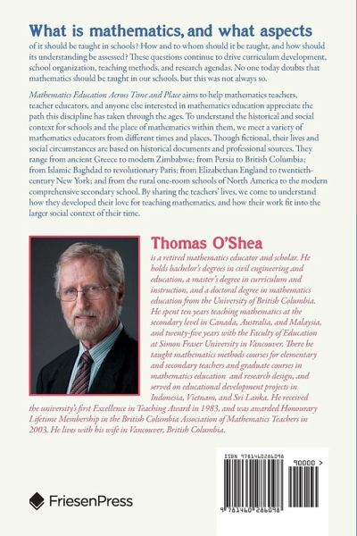 Thomas O'Shea is a retired mathematics educator and scholar. He holds bachelor's degrees in civil engineering and education, a master's degree in curriculum and instruction, and a doctoral degree in mathematics education from the University of British Columbia. He spent ten years teaching mathematics at the secondary level in Canada, Australia, and Malaysia, and twenty-five years with the Faculty of Education at Simon Fraser University in Vancouver. There he taught mathematics methods courses for elementary and secondary teachers and graduate courses in mathematics education and research design, and served on educational development projects in Indonesia, Vietnam, and Sri Lanka. He received the university's first Excellence in Teaching Award in 1983, and was awarded Honourary Lifetime Membership in the British Columbia Association of Mathematics Teachers in 2003. He lives with his wife in Vancouver, British Columbia.
